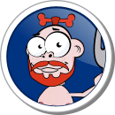 Charly may look scary with his large fork. He is, however, a peace-loving vegetarian. He, too, often stands in Jim's path.